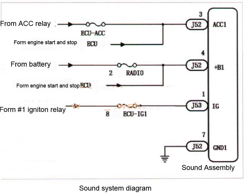 通常情況下,聲音和顯示屏幕將關閉,該裝置應在電源後休眠狀態off.But現在,電源開關已經關閉,設備仍在工作,這表明他們的電源沒有切斷。當故障排除後,需要檢查聲音和顯示電源first.Below表示聲音系統圖:無線組件具有三個電源端子:+ B1(電池電源),ACC1(ACC電源),IG(IG ON電源)。只要ACC和131供電,無線電可以normally.Analyse無線電供給電路和故障症狀工作,它推薦,有在ACC1電源電路故障。顯示屏電路是一樣的無線電系統,你只需要檢查無線電電路第一。雷克薩斯RX200T是一個新的車從來沒有電線破損和it.So modificaiton線故障的可能性很小,我們需要檢查其他相關首先的因素。當技術員除去空氣濾清器形式的電源插座的連接器,麻煩消失,無線電及顯示屏幕可以關閉correctly.And堵塞空氣濾清器連接器背面,麻煩出現again.After連連測試,測試結果是相同的:這個問題是由於空氣濾清器連接器。維修總結: 1.為什麼空氣濾清器造成了trobule和影響無線電工作?該空氣淨化器採用內置電源裝備,它由內置電源正常工作時功率外部電源被切斷off.When在位置ACC或IG的電源開關等,通過vehicle.When空氣cleanr電源就關閉車輛動力,通過空氣淨化器的車輛電源插座功率內置power.then電源插座供電為ECU-ACC circuit.At此時,車輛的一部分的電氣設備已工作條件,所以會出現症狀:無線電和顯示屏幕仍然工作切割之後關閉電源。2.有很多車載附件配備有充電和放電功能,如駕駛記錄儀,汽車空氣淨化器,充電寶等,通過連接點煙器或外部電源連接端口大多數這些器件以獲得功率,在當車輛從電源相關的故障,首先遭受就要斷開這些附加設備,可以少走彎路。3.許多車輛附加設備具有用於vehicle.It的影響將導致各種車輛故障,如的設計缺陷和缺乏考慮:寄生電流增大,電池的總損耗,GPRS信號不能接收,等等,在排除電氣故障,首先要斷開這些配件設備,避免走彎路。從汽車修理技師家庭,後雷克薩斯RX200T關機:聲音和Displasy屏幕仍然工作