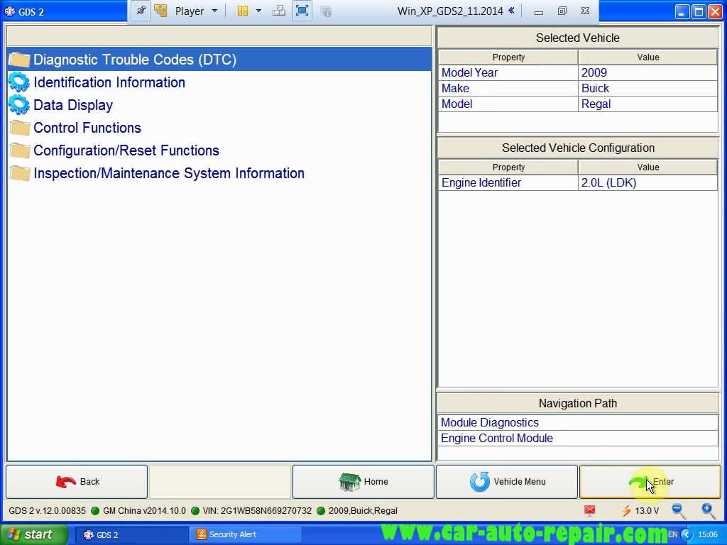 在桌面上打开“GDS2”。点击“诊断” 如果它提示你“无法确定veicle”,请按“Enter”键继续在这里选择2009年选择“模块诊断” ,选择“发动机控制模块” 2.0L LDK 选择“诊断故障码(DTC)”,然后按“Enter”键继续
