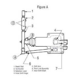3. 从选择杆上拆下开口销、锁紧螺母和球窝接头 A(见图 A)。不要从枢轴连杆上拆下球窝接头。