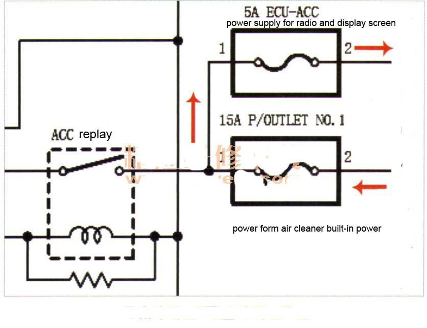 通常情況下,聲音和顯示屏幕將關閉,該裝置應在電源後休眠狀態off.But現在,電源開關已經關閉,設備仍在工作,這表明他們的電源沒有切斷。當故障排除後,需要檢查聲音和顯示電源first.Below表示聲音系統圖:無線組件具有三個電源端子:+ B1(電池電源),ACC1(ACC電源),IG(IG ON電源)。只要ACC和131供電,無線電可以normally.Analyse無線電供給電路和故障症狀工作,它推薦,有在ACC1電源電路故障。顯示屏電路是一樣的無線電系統,你只需要檢查無線電電路第一。雷克薩斯RX200T是一個新的車從來沒有電線破損和it.So modificaiton線故障的可能性很小,我們需要檢查其他相關首先的因素。當技術員除去空氣濾清器形式的電源插座的連接器,麻煩消失,無線電及顯示屏幕可以關閉correctly.And堵塞空氣濾清器連接器背面,麻煩出現again.After連連測試,測試結果是相同的:這個問題是由於空氣濾清器連接器。維修總結: 1.為什麼空氣濾清器造成了trobule和影響無線電工作?該空氣淨化器採用內置電源裝備,它由內置電源正常工作時功率外部電源被切斷off.When在位置ACC或IG的電源開關等,通過vehicle.When空氣cleanr電源就關閉車輛動力,通過空氣淨化器的車輛電源插座功率內置power.then電源插座供電為ECU-ACC circuit.At此時,車輛的一部分的電氣設備已工作條件,所以會出現症狀:無線電和顯示屏幕仍然工作切割之後關閉電源。2.有很多車載附件配備有充電和放電功能,如駕駛記錄儀,汽車空氣淨化器,充電寶等,通過連接點煙器或外部電源連接端口大多數這些器件以獲得功率,在當車輛從電源相關的故障,首先遭受就要斷開這些附加設備,可以少走彎路。3.許多車輛附加設備具有用於vehicle.It的影響將導致各種車輛故障,如的設計缺陷和缺乏考慮:寄生電流增大,電池的總損耗,GPRS信號不能接收,等等,在排除電氣故障,首先要斷開這些配件設備,避免走彎路。從汽車修理技師家庭,後雷克薩斯RX200T關機:聲音和Displasy屏幕仍然工作