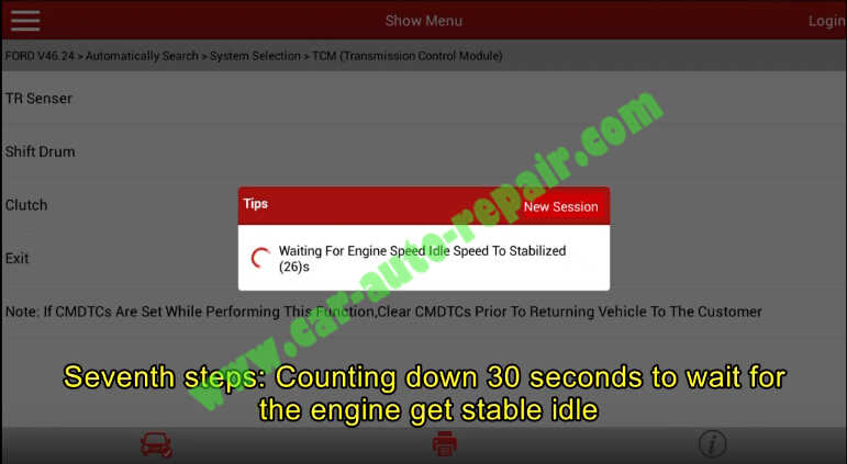 “這個功能允許中醫部件更換後學習新的參數,必須執行作為推薦在服務手冊procedure.This功能將重置TCM參數和執行一系列例程以允許TCM學習離合器,變速鼓,和TRS參數。