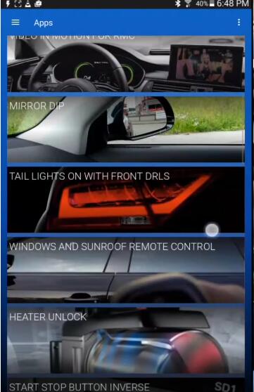 Once you click on the app section,it will pull up all the available options you have for this particular vehicle