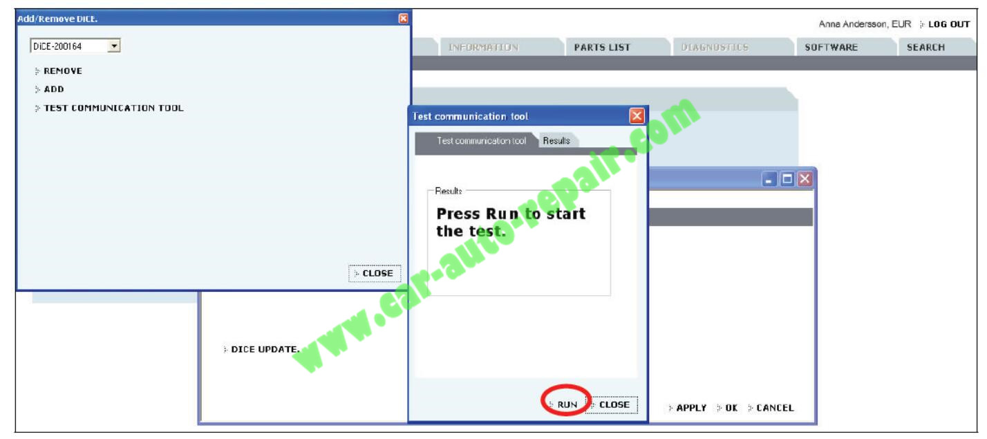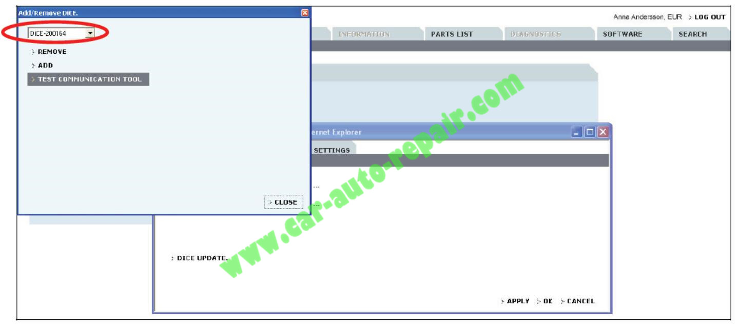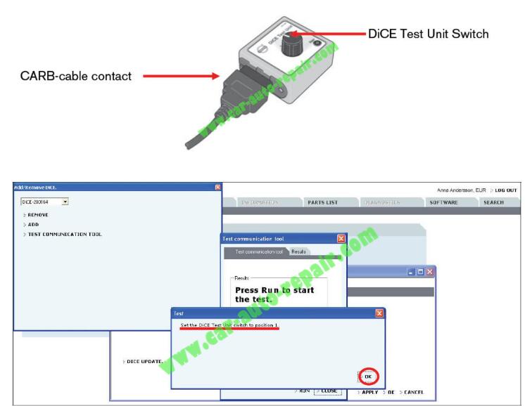 3.将骰子骰子测试单元。注意!车辆接口状态现在LED亮起(公司红灯)。