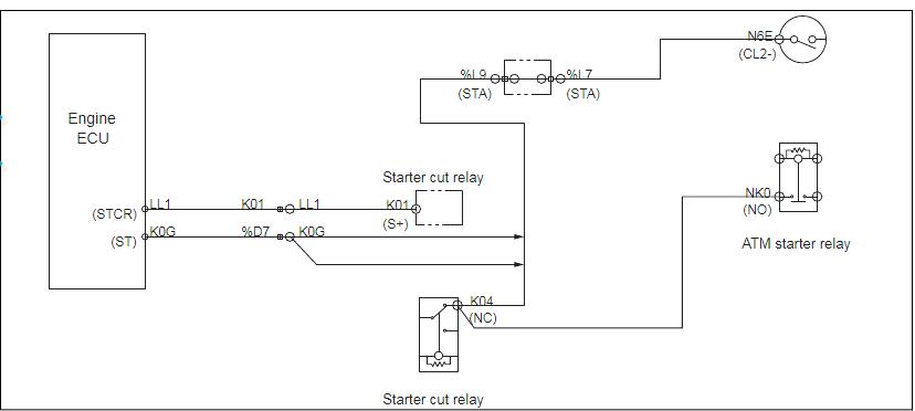 在10 V•起动机切断继电器遗体的输出或多个3秒钟或更长时间。