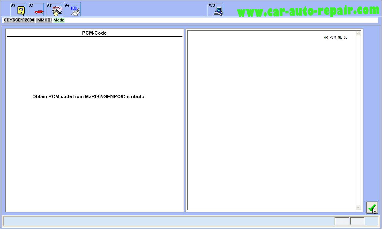 使用[ Acura代码生成器 ]计算的PCM代码。 关闭 点火开关 打开点火开关关闭点火开关。已将防盗锁代码注册到防盗锁单元中。 按对勾以继续检查所有键,以确保每个键都会启动发动机。 这辆车是否配备了KEYLESS ACCESS远程系统? 单击[否] 注册完成。按勾号继续 。https://www.autoepccatalog.com/product/honda-hds-diagnostic-software-i-hds-ecu-rewrite-immobilizer-tool/
